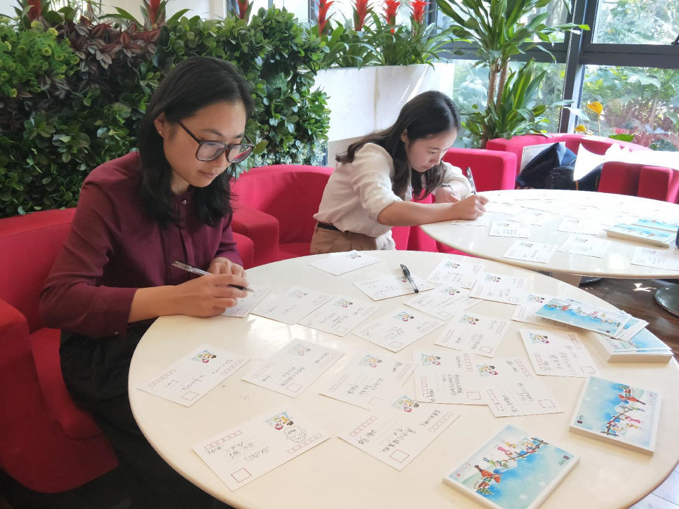 在愛心捐贈的同時,員工們也用書寫明信片的方式向貧困山區(qū)的孩子傳遞愛和鼓勵。